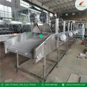 Băng tải có quạt làm mát (băng tải làm nguội) là một loại băng tải công nghiệp được tích hợp thêm quạt gió để tạo luồng không khí làm mát sản phẩm trong quá trình vận chuyển. Hệ thống này thường được sử dụng trong các môi trường sản xuất có nhiệt độ cao, hoặc khi sản phẩm cần được làm nguội trong quá trình vận chuyển.